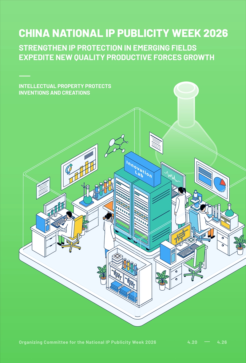 On April 20, China National Intellectual Property (IP) Publicity Week 2026 will kick off under the theme "Strengthen IP Protection in Emerging Fields – Expedite New Quality Productive Forces Growth." The much-anticipated public posters are unveiled today. This year, a set of four Chinese posters has been specially designed, alongside the debut of English posters. To meet diverse usage needs, both Chinese and English versions are available for download. The Office of the Organizing Committee for the National IP Publicity Week 2026 is granting public-interest licenses for the use of the posters to relevant departments or institutions as needed. These departments or institutions shall comply with the specified requirements when using the posters, and must not alter the sequence of the posters or their designs.(Translated from CNIPA Website Chinese Version)